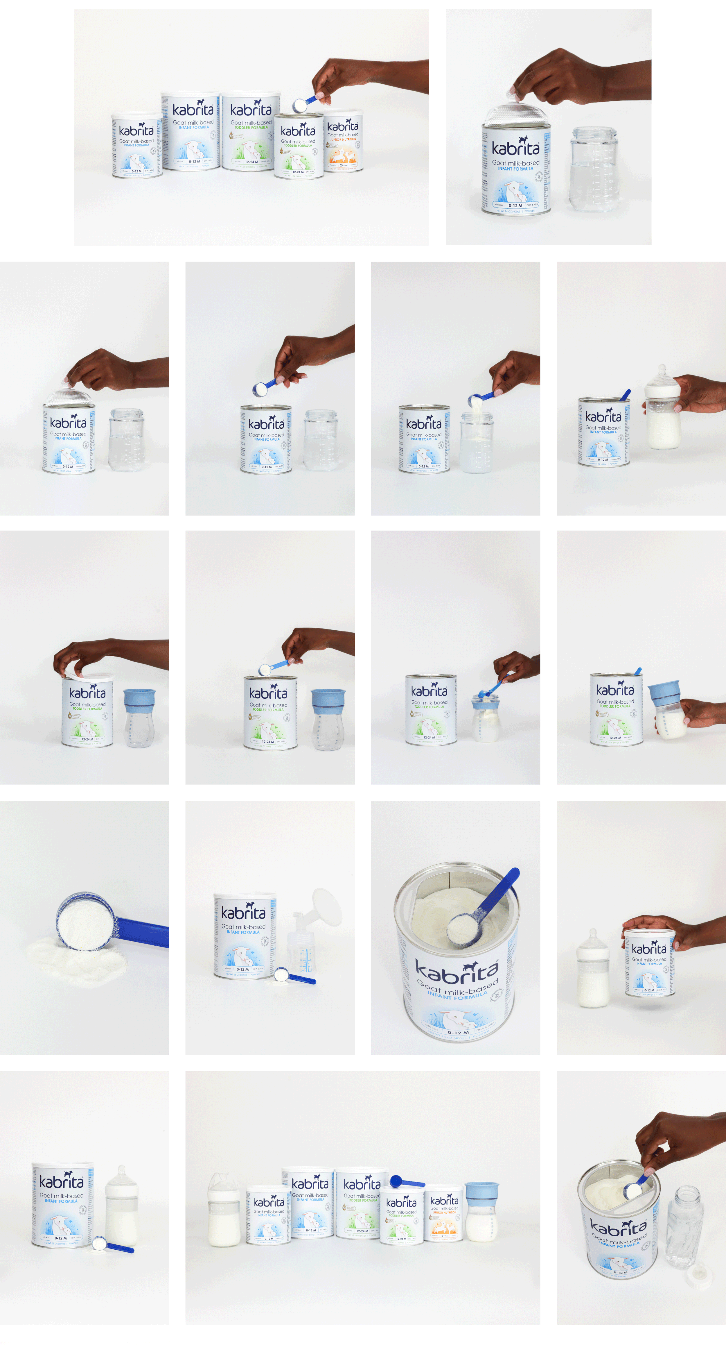 Kabrita’s goat milk–based baby formula needed a fresh, vibrant approach to its product imagery. The goal was to capture the connection between parent and product - highlighting the simple, nurturing experience of preparing a bottle. We also aimed to showcase the premium quality of the formula powder, a point of pride for Kabrita and a feature consistently praised by parents. Below are the final images, animated GIF concepts, and supporting assets that bring this story to life.